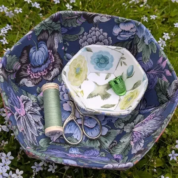 Learn how to make these beautiful bowls by So Treasured. The Prosperity Bowl is a wonderful, portable project that is constructed using "English Paper Piecing" techniques with a twist. We make the middle size bowl. This is a hand-sewing project.